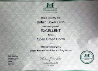 The Committee of The British Boxer Club were delighted to receive this from the Kennel Club after our last open show. Proof of what a great team we have. |
